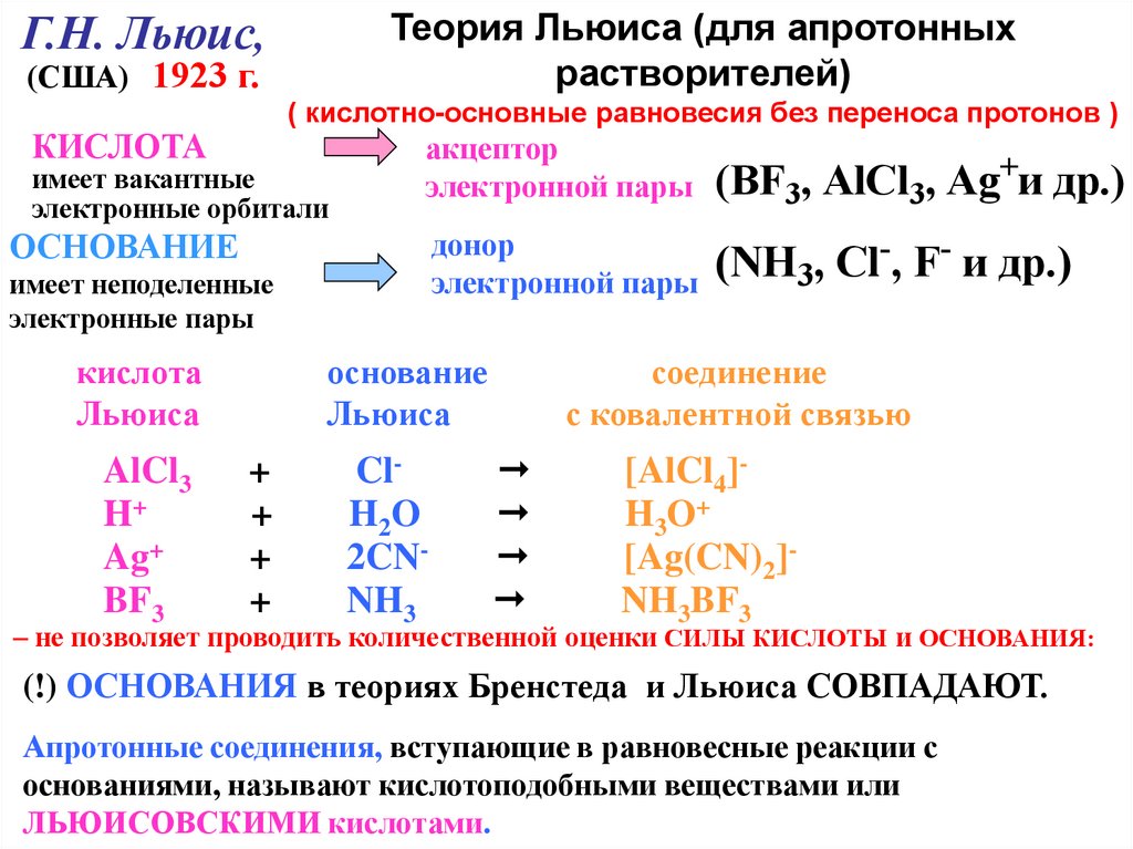 (!) ОСНОВАНИЯ в теориях Бренстеда и Льюиса СОВПАДАЮТ.