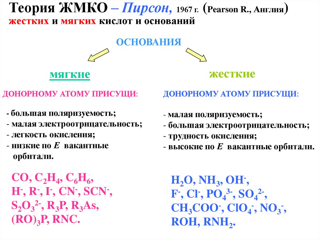Теория ЖМКО – Пирсон, 1967 г. (Pearson R., Англия)жестких и мягких кислот и оснований