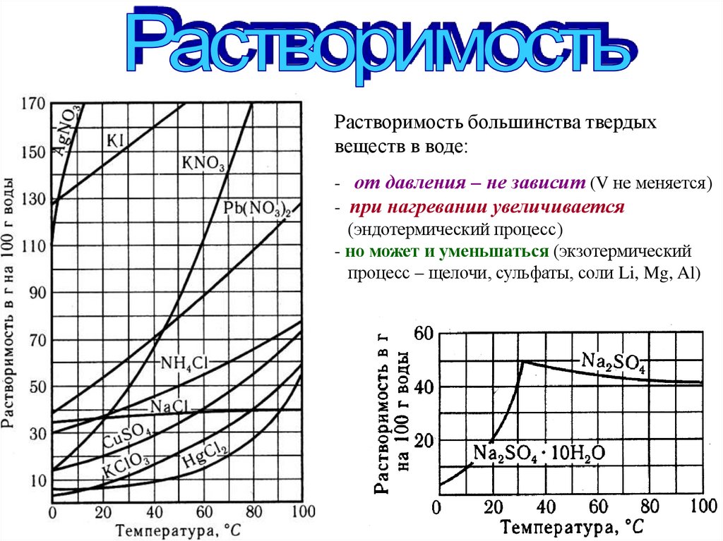 K2CO3, CuSO4 и некоторые другие – экзотермически)