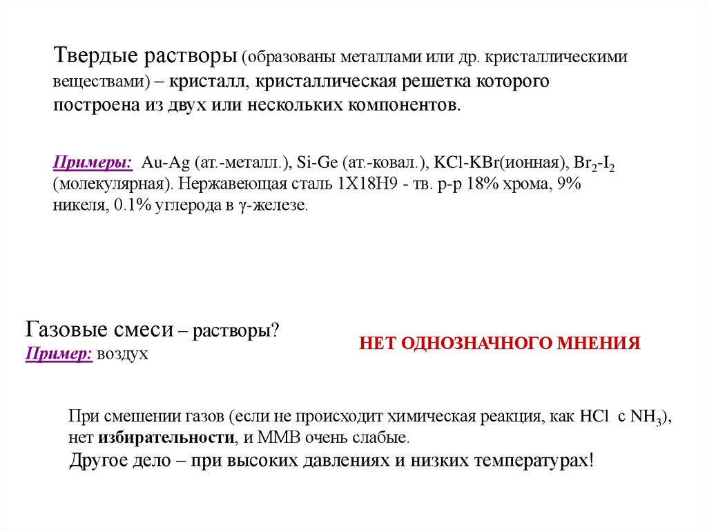 Твердые растворы (образованы металлами или др. кристаллическимивеществами) – кристалл, кристаллическая решетка которого