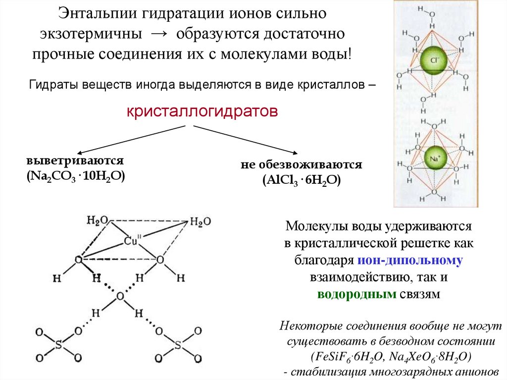 Энтальпии гидратации ионов сильноэкзотермичны → образуются достаточно