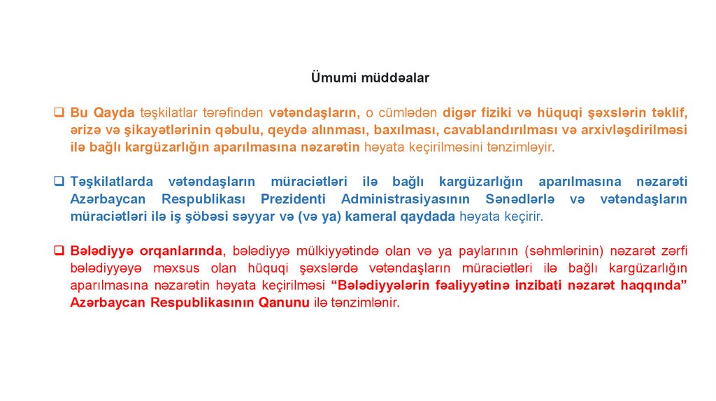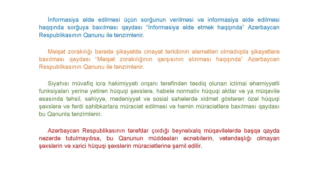 Qanunun müddəaları vətəndaşların bütün müraciətlərinə şamil edilir.