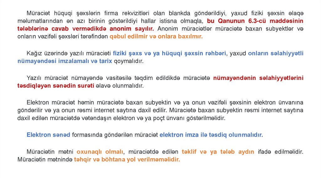 hüquqi ünvanı, onun rəhbərinin imzası) olmadan yazılı formada göndərilən müraciət.