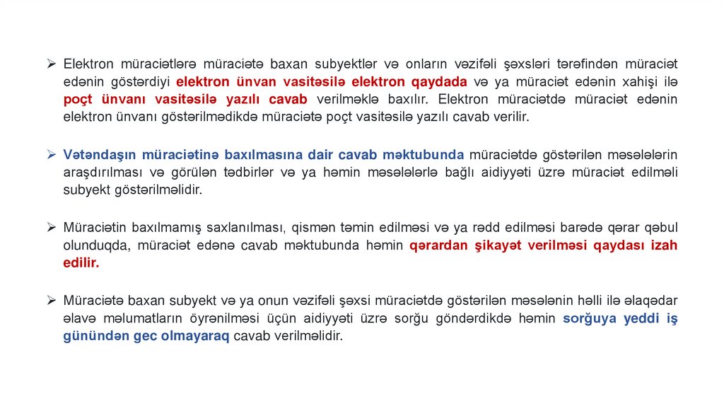 elektron müraciət – müraciətə baxan subyektin və ya onun vəzifəli şəxsinin elektron ünvanına