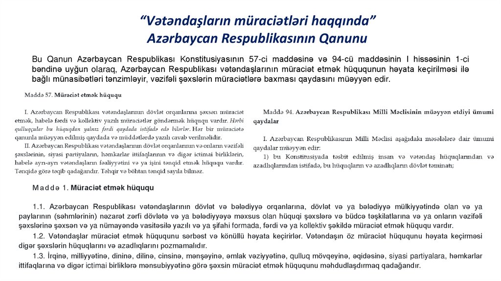 “Vətəndaşların müraciətləri haqqında”Azərbaycan Respublikasının Qanunu