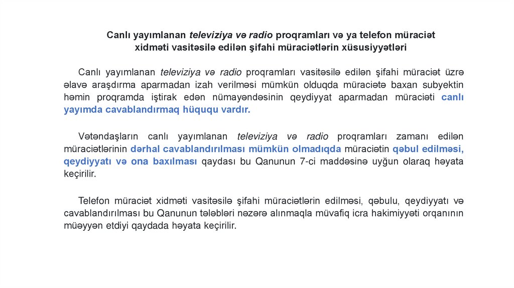 müraciətə baxan subyektin canlı yayımlanan televiziya və radio proqramındakı