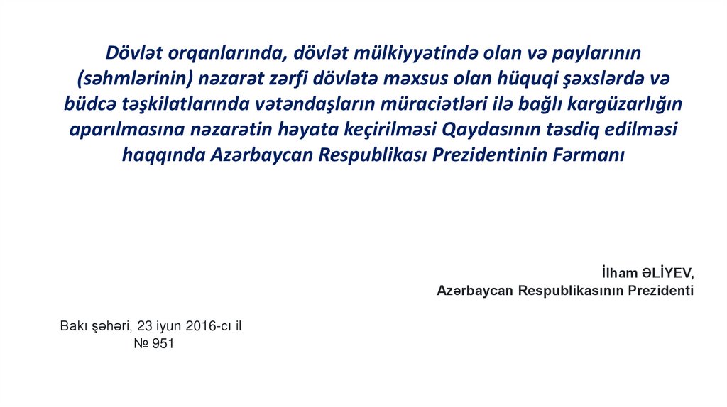 müraciətə baxan subyektin vəzifəli şəxsi – müraciətə baxan subyektin rəhbəri, dövlət