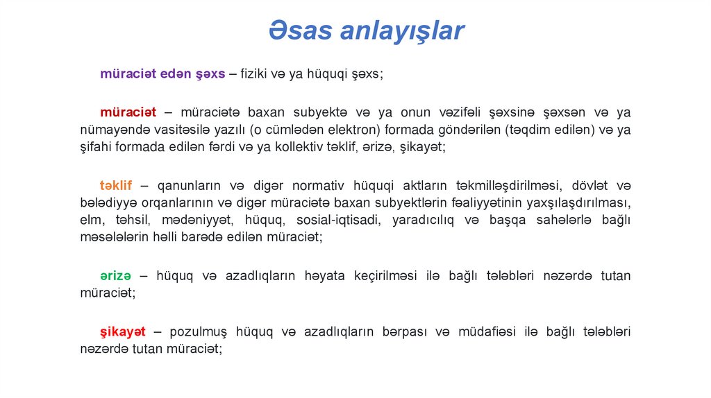 Əsas anlayışlarmüraciət edən şəxs – fiziki və ya hüquqi şəxs;