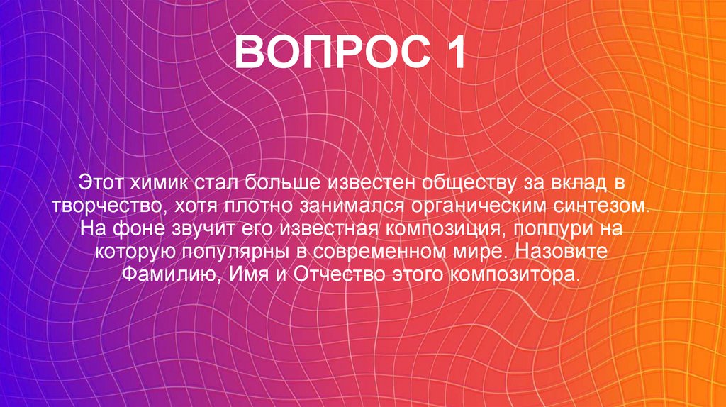 ВОПРОС 1Этот химик стал больше известен обществу за вклад в