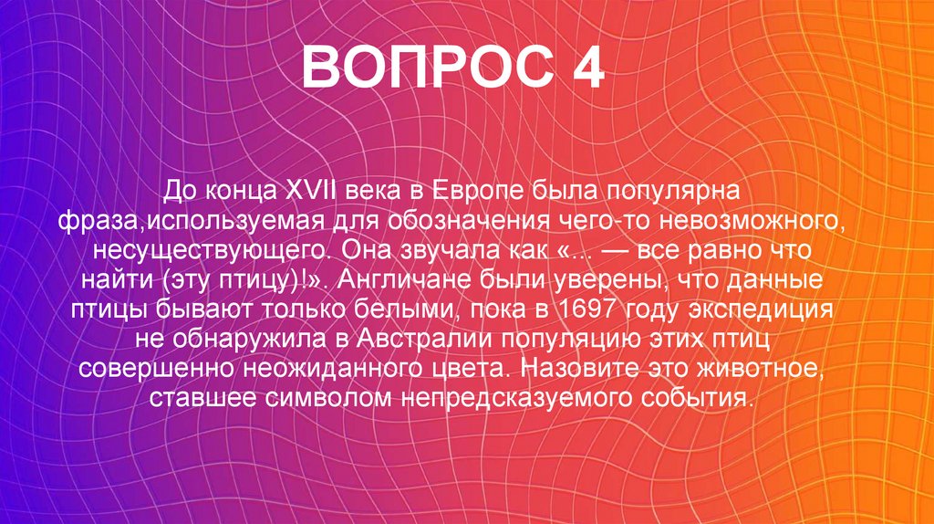 птицы бывают только белыми, пока в 1697 году экспедиция