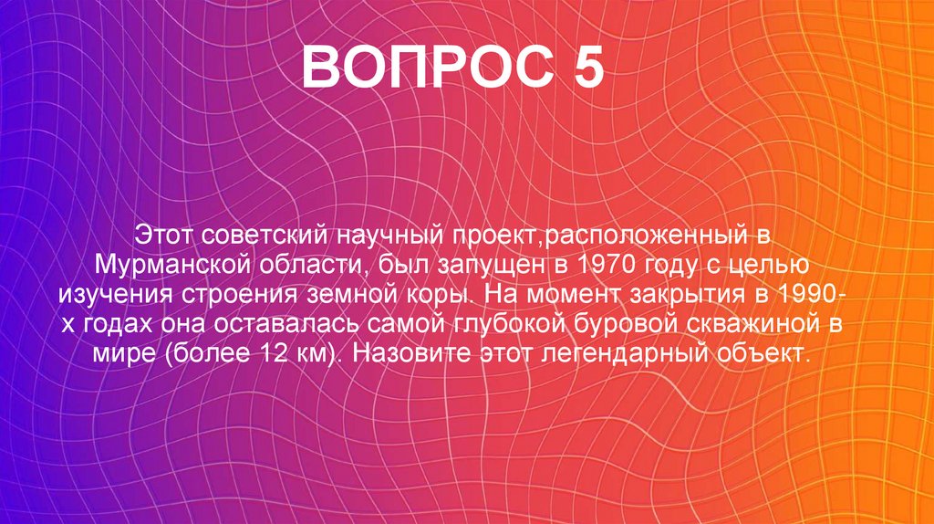ВОПРОС 5Этот советский научный проект,расположенный в