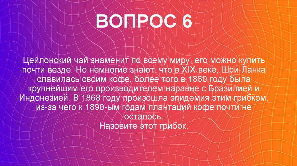 ВОПРОС 6Цейлонский чай знаменит по всему миру, его можно купить