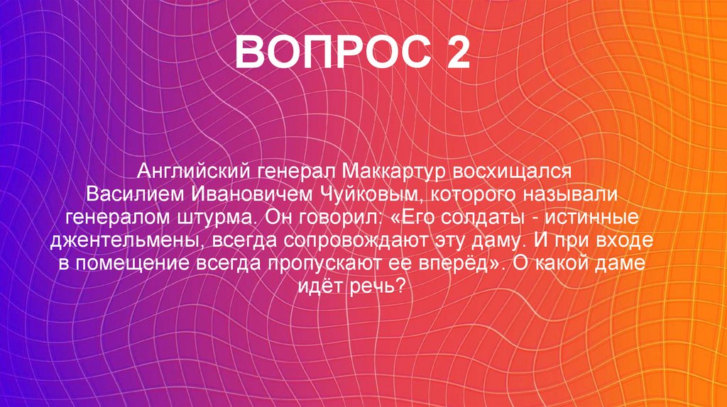 ВОПРОС 2Английский генерал Маккартур восхищался