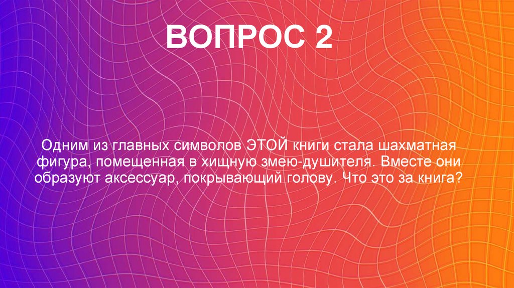 ВОПРОС 2Одним из главных символов ЭТОЙ книги стала шахматная