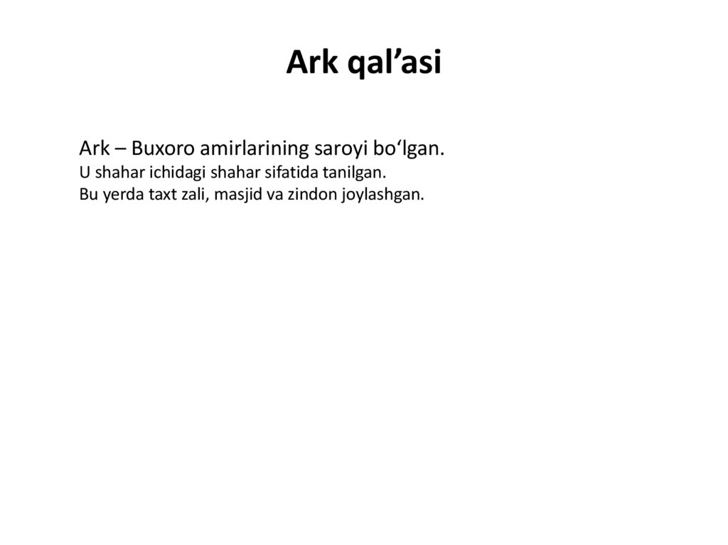 Ark qal’asiArk – Buxoro amirlarining saroyi bo‘lgan.