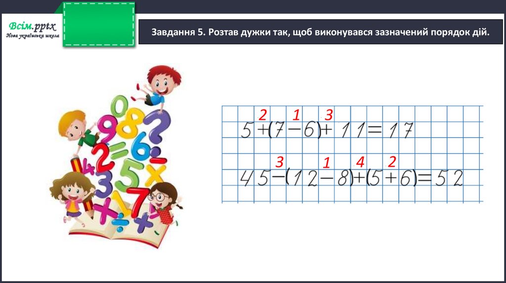 Завдання 5. Розтав дужки так, щоб виконувався зазначений порядок дій.2