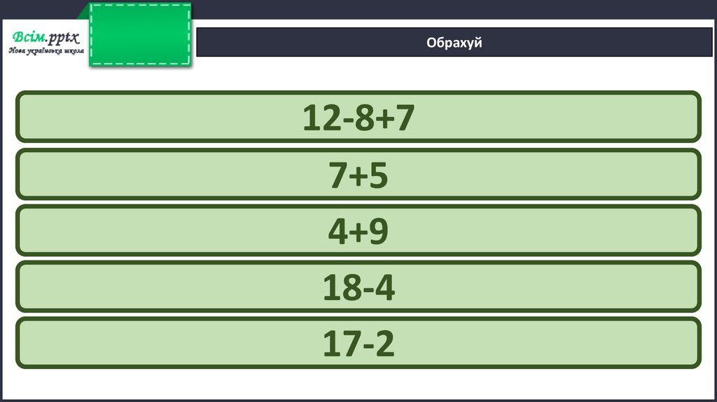 12 – 9 = 3 , оскільки 3 + 9 = 12
