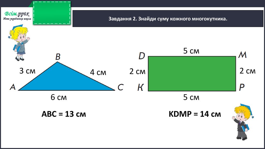 Завдання 2. Знайди суму кожного многокутника.5 см