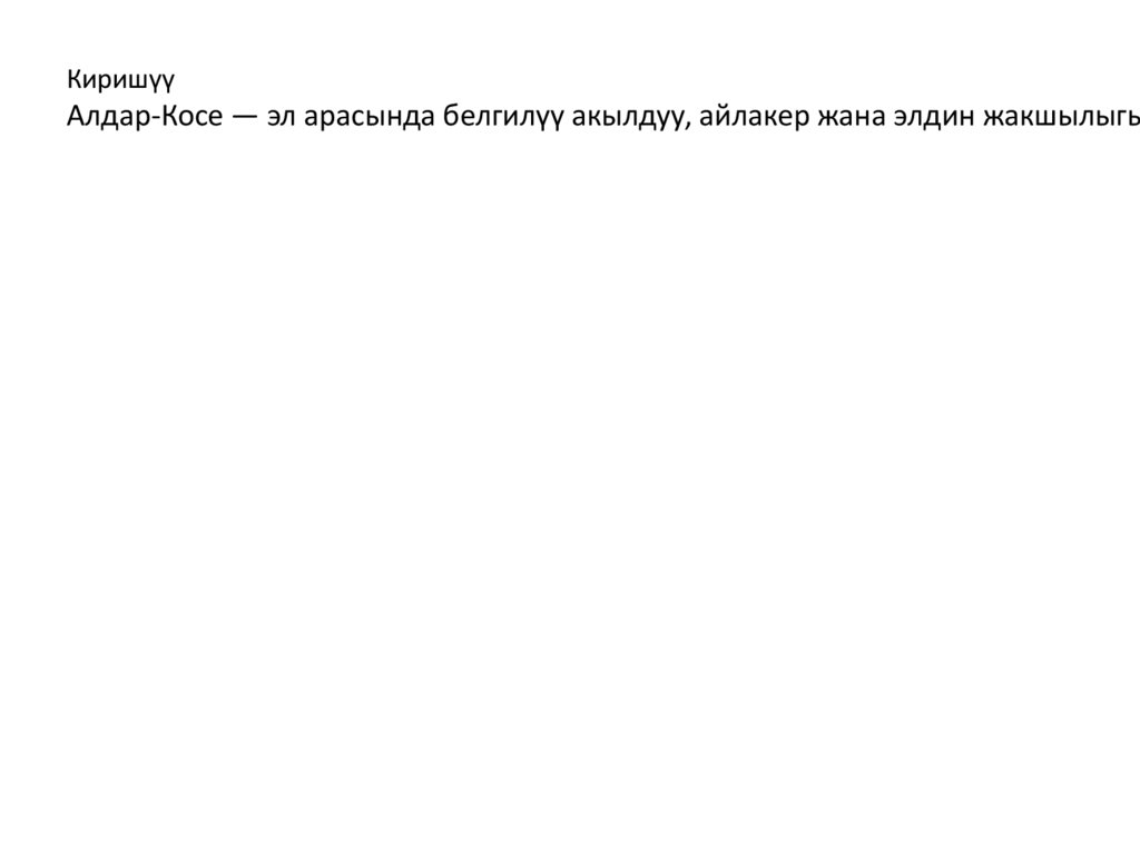 КиришүүАлдар-Косе — эл арасында белгилүү акылдуу, айлакер жана элдин жакшылыгы