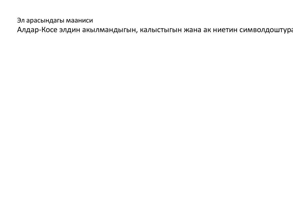 Эл арасындагы маанисиАлдар-Косе элдин акылмандыгын, калыстыгын жана ак ниетин символдоштура
