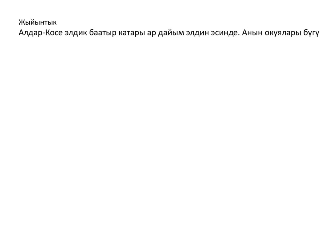 ЖыйынтыкАлдар-Косе элдик баатыр катары ар дайым элдин эсинде. Анын окуялары бүгүн