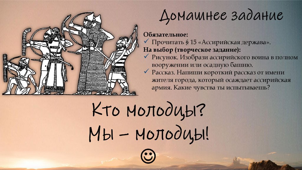 Обязательное:Прочитать § 15 «Ассирийская держава».