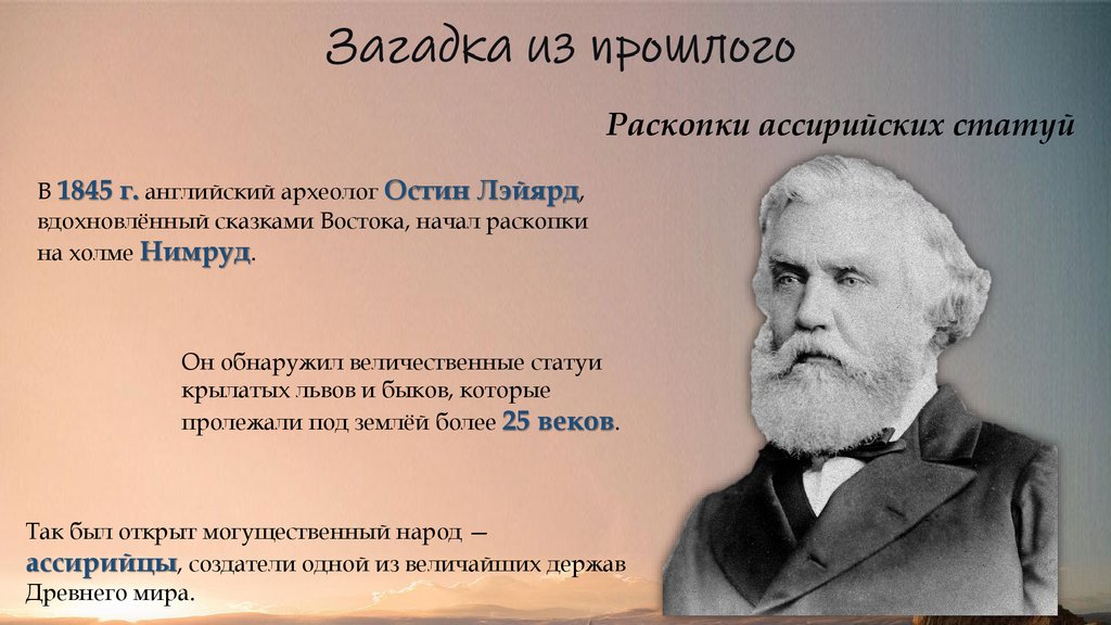 Раскопки ассирийских статуйВ 1845 г. английский археолог Остин Лэйярд,