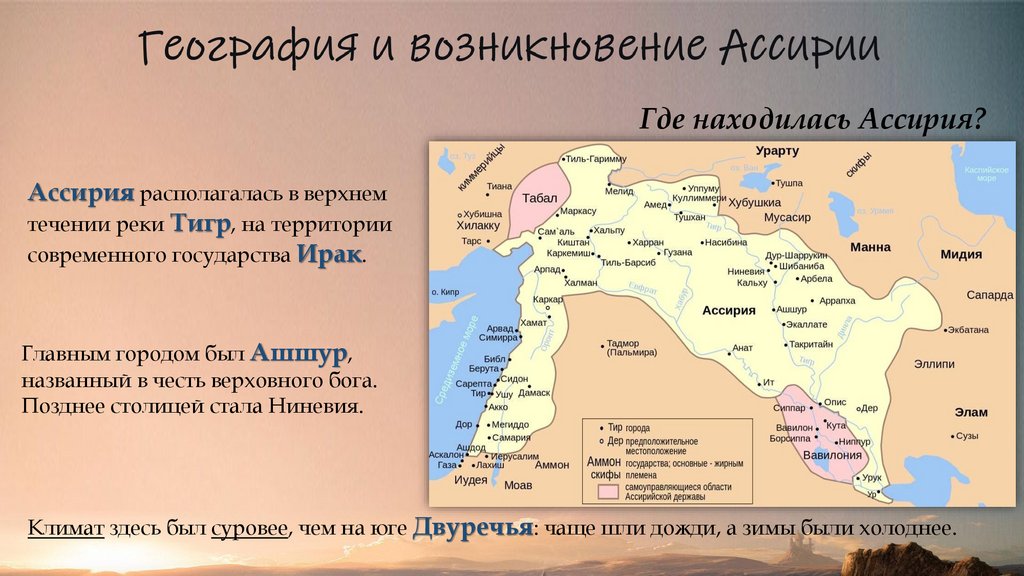 Где находилась Ассирия?Ассирия располагалась в верхнем
