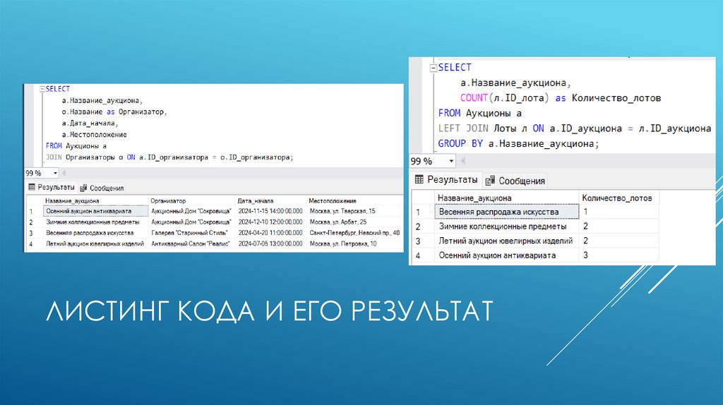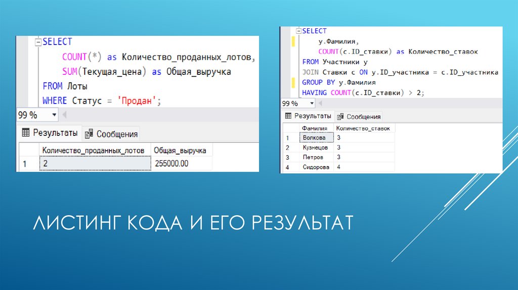 ЛИСТИНГ КОДА И ЕГО РЕЗУЛЬТАТ12.