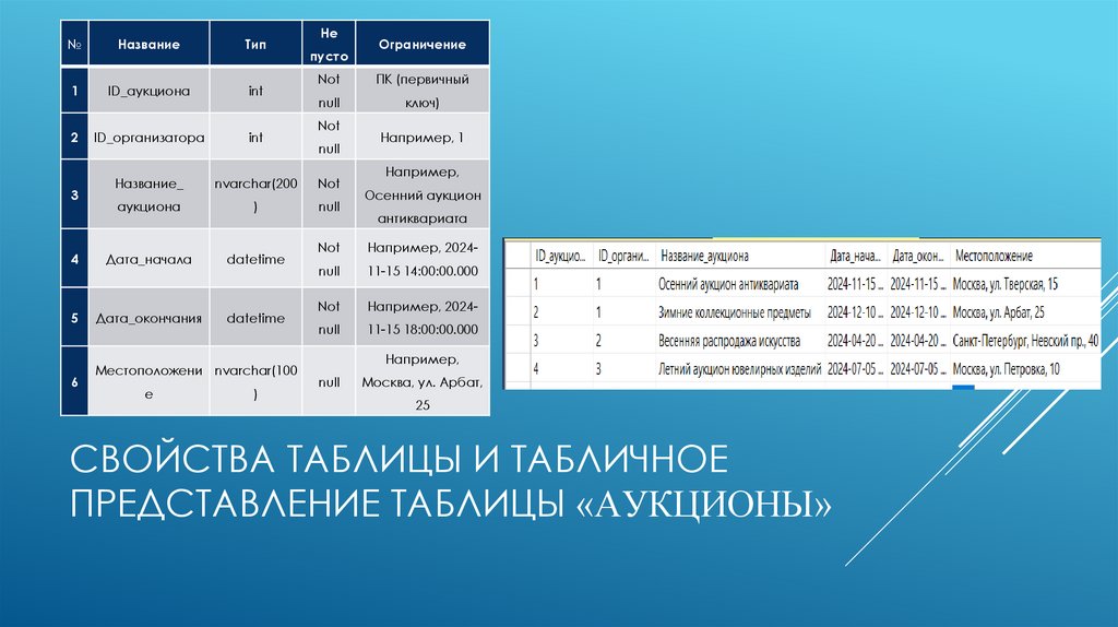 ПРЕДСТАВЛЕНИЕ ТАБЛИЦЫ «АУКЦИОНЫ»