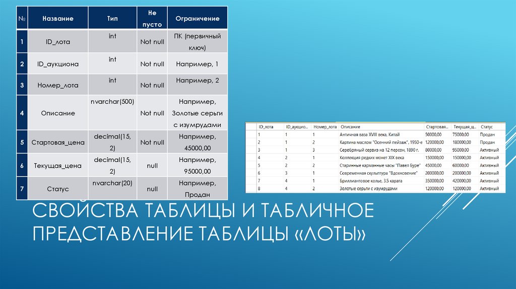 ПРЕДСТАВЛЕНИЕ ТАБЛИЦЫ «ЛОТЫ»