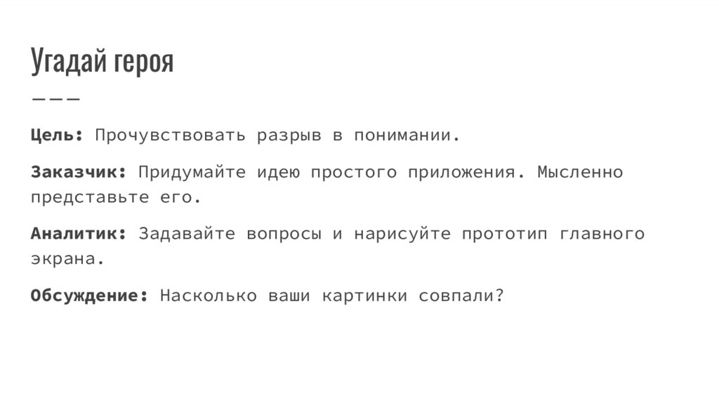 Угадай герояЦель: Прочувствовать разрыв в понимании.