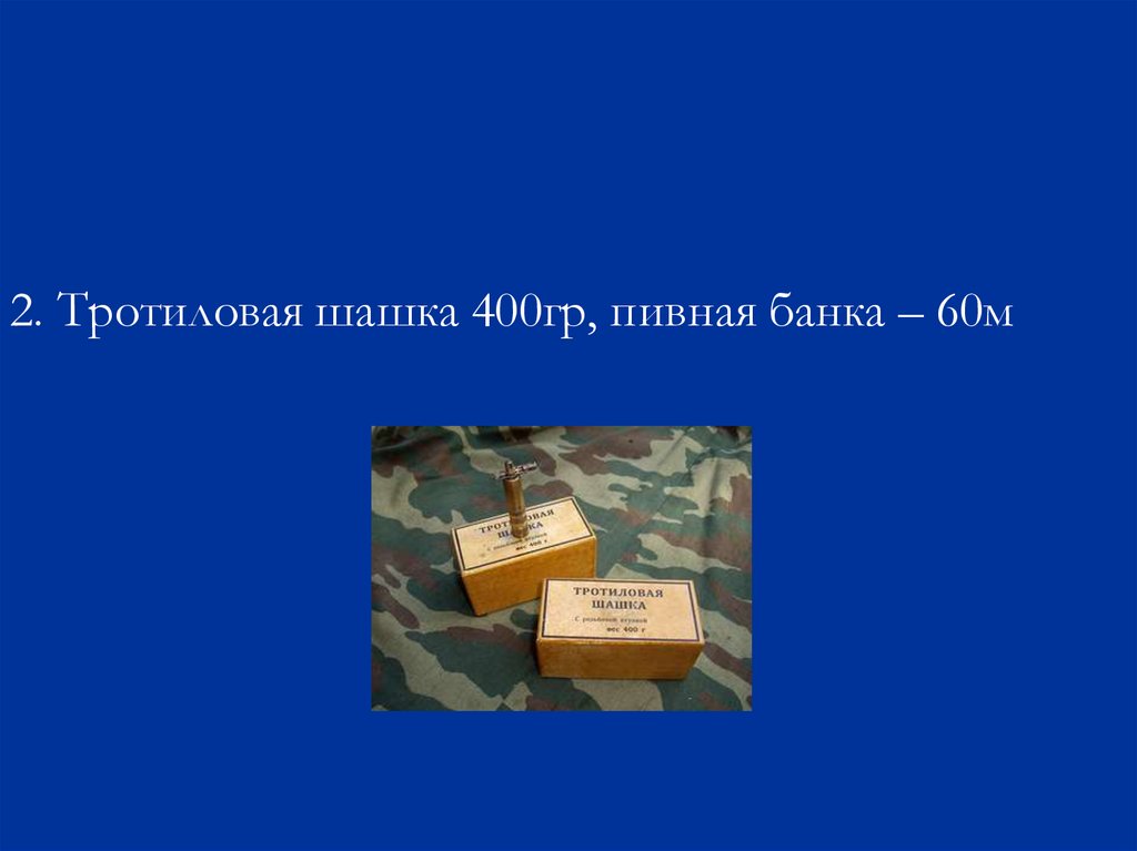 2. Тротиловая шашка 400гр, пивная банка – 60м6.