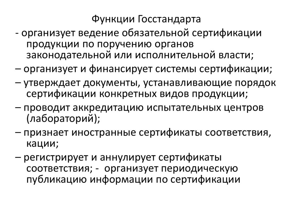 Функции Госстандарта- организует ведение обязательной сертификации