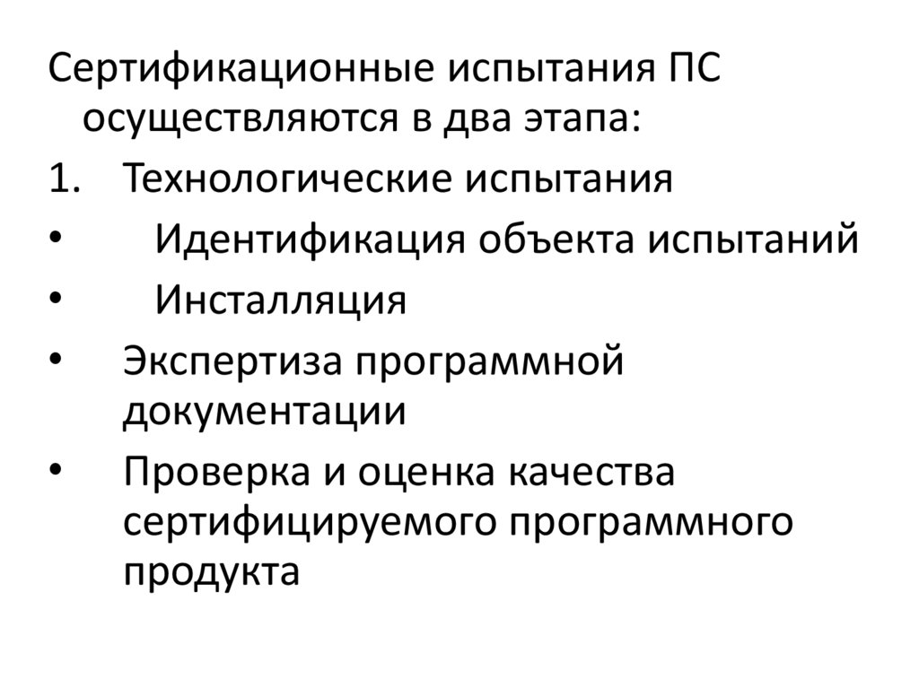 Сертификационные испытания ПСосуществляются в два этапа: