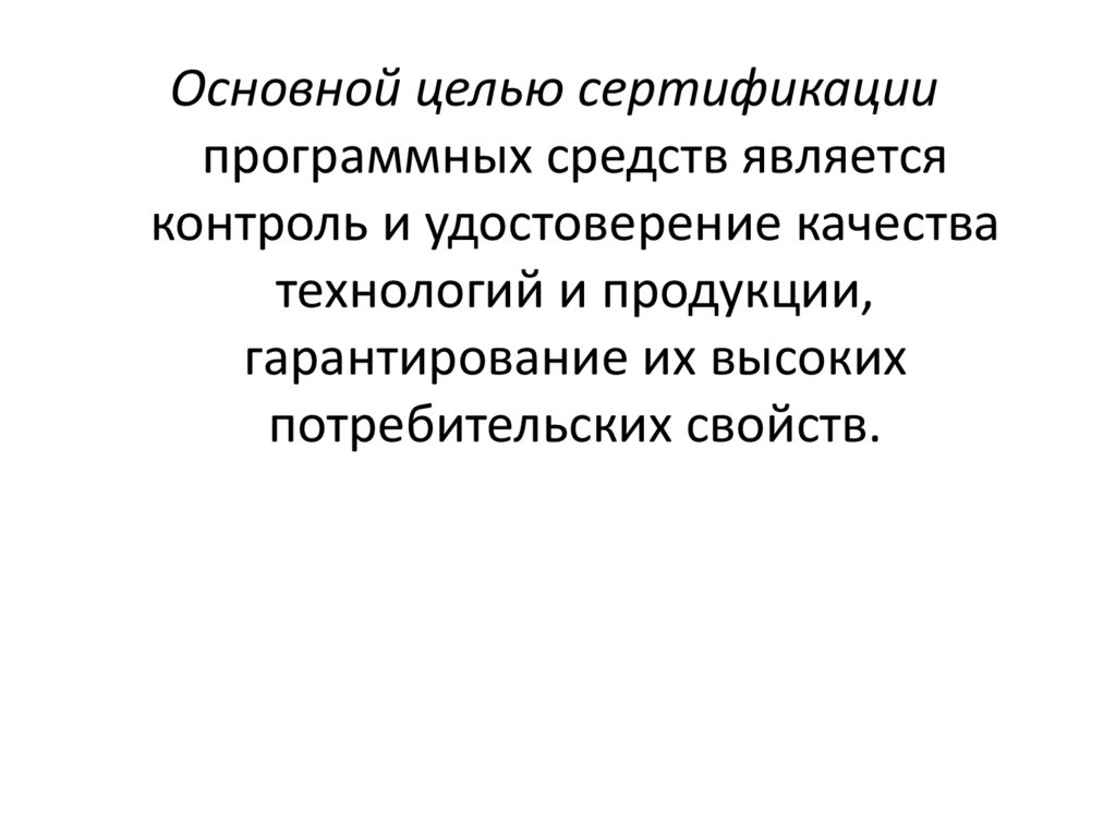 Основной целью сертификациипрограммных средств является