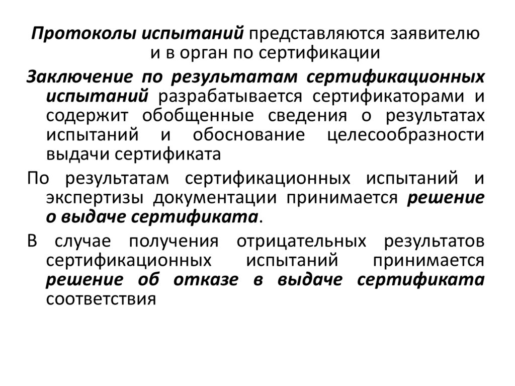 Протоколы испытаний представляются заявителюи в орган по сертификации