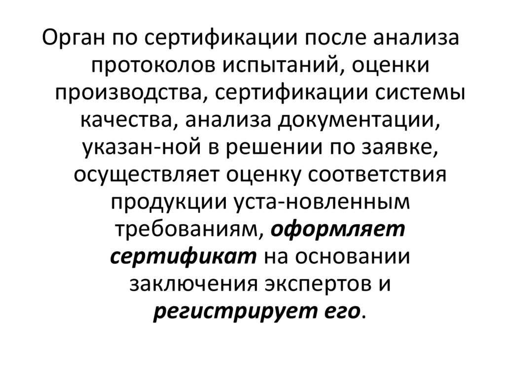 Орган по сертификации после анализапротоколов испытаний, оценки