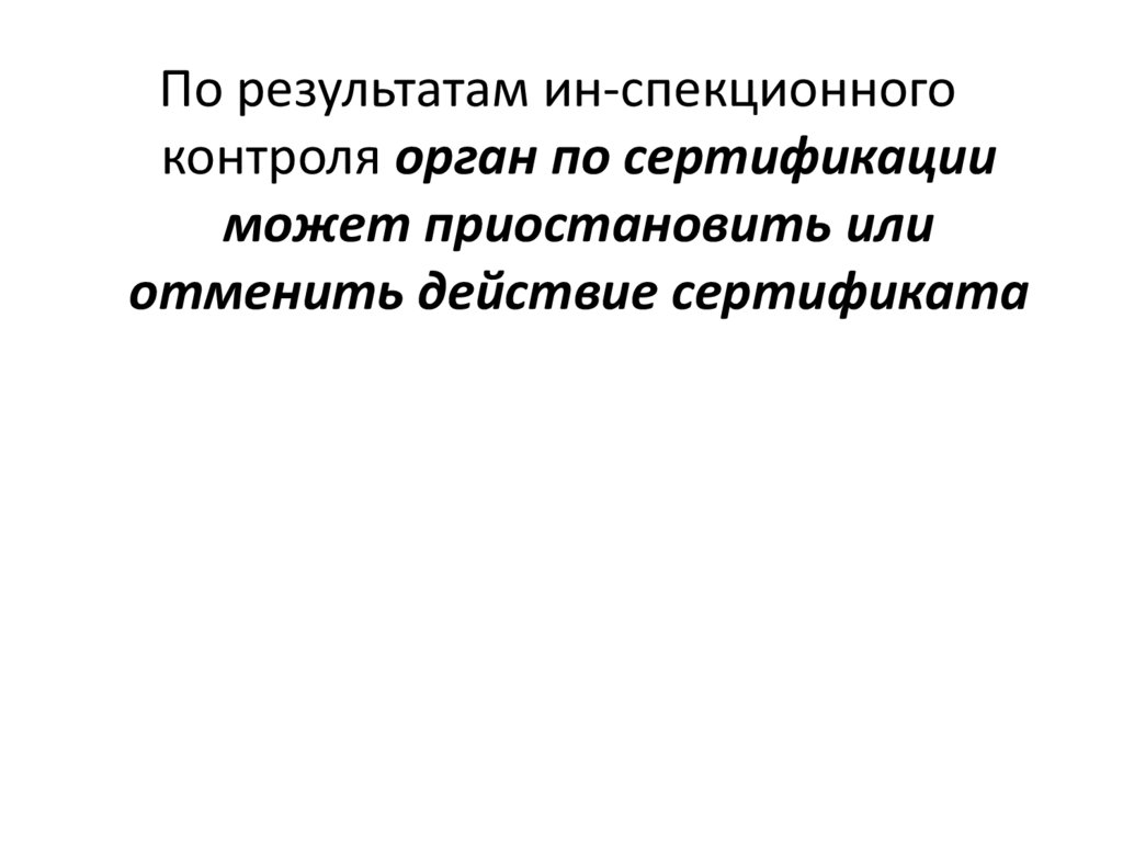 По результатам ин-спекционногоконтроля орган по сертификации