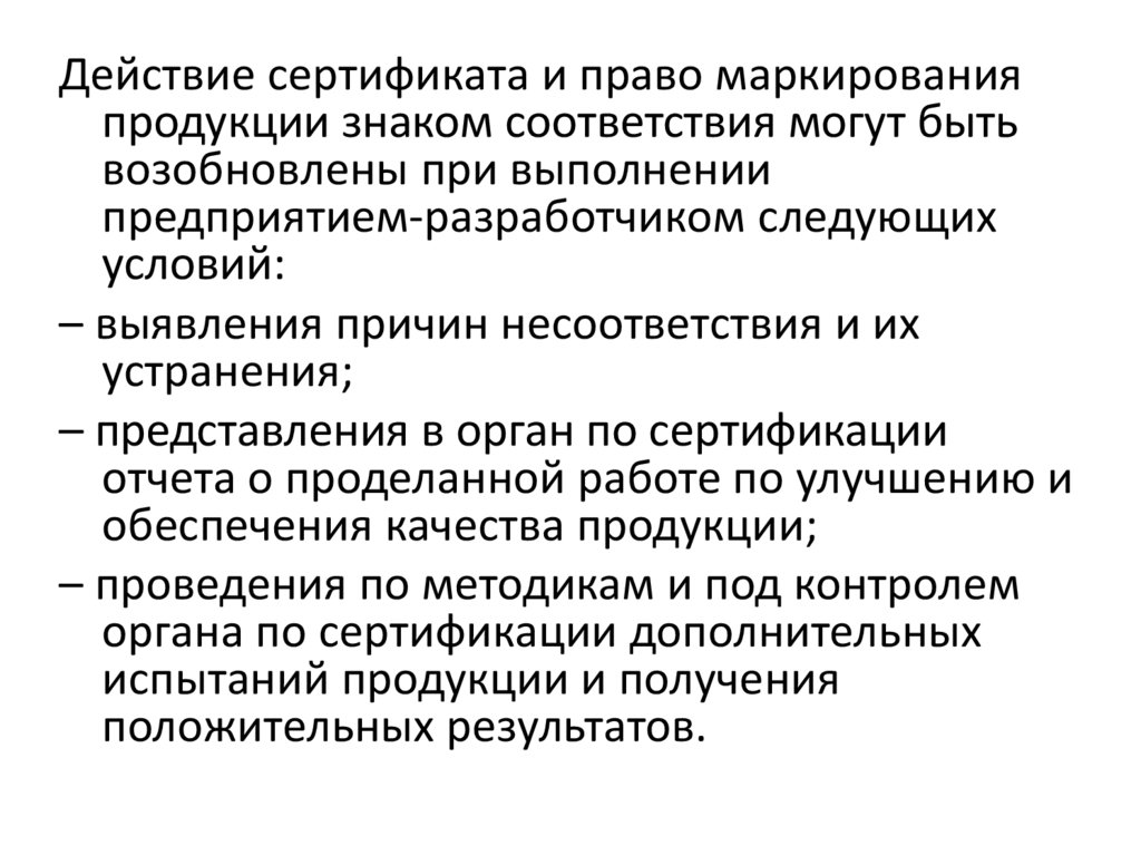 Действие сертификата и право маркированияпродукции знаком соответствия могут быть