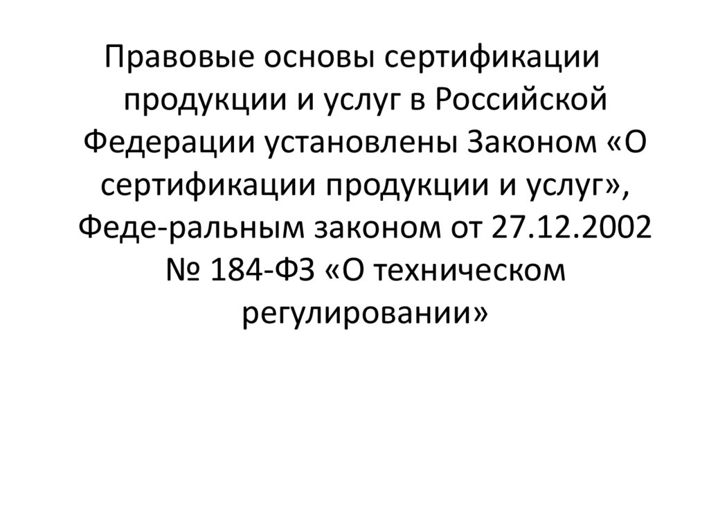 Правовые основы сертификациипродукции и услуг в Российской
