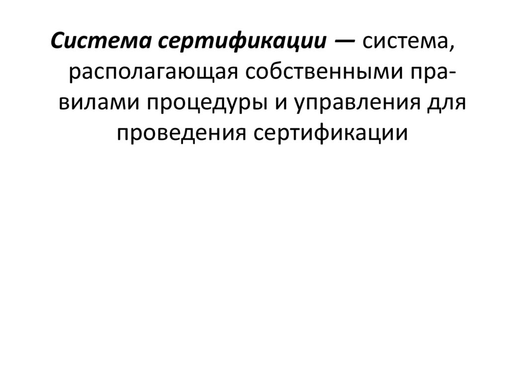 Система сертификации — система,располагающая собственными правилами процедуры и управления для