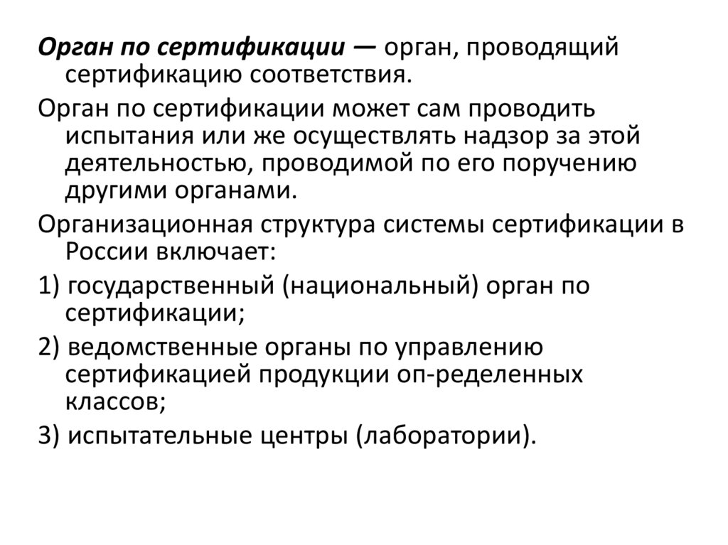 Орган по сертификации — орган, проводящийсертификацию соответствия.