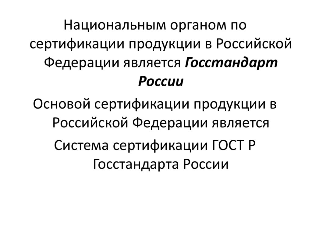 Национальным органом посертификации продукции в Российской