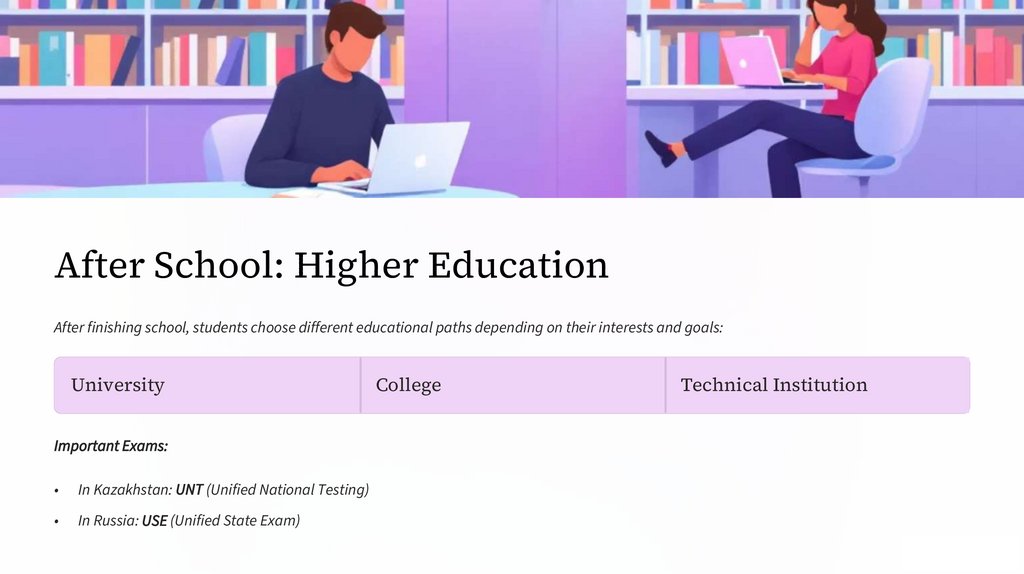 After School: Higher EducationAfter finishing school, students choose different educational paths depending on their interests and goals: