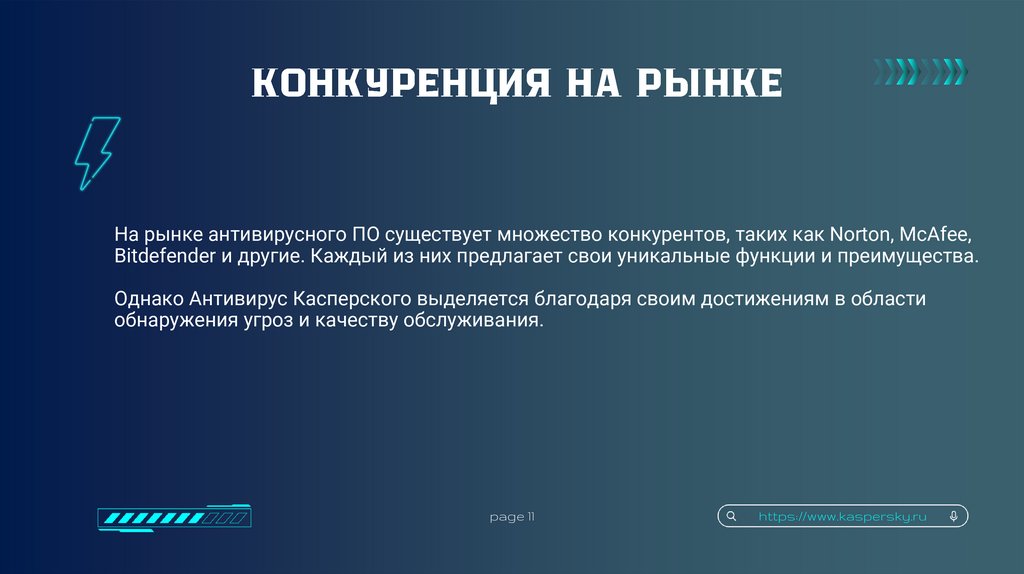 На рынке антивирусного ПО существует множество конкурентов, таких как Norton, McAfee,Bitdefender и другие. Каждый из них предлагает свои уникальные функции и преимущества.
