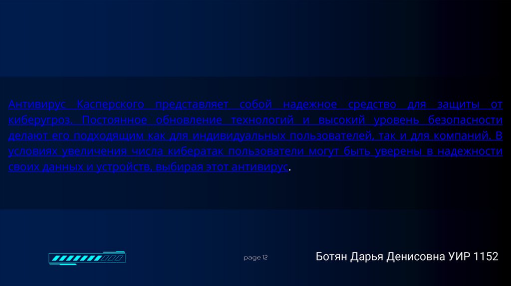 Антивирус Касперского представляет собой надежное средство для защиты откиберугроз. Постоянное обновление технологий и высокий уровень безопасности