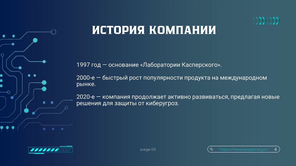 1997 год — основание «Лаборатории Касперского».2000-е — быстрый рост популярности продукта на международном