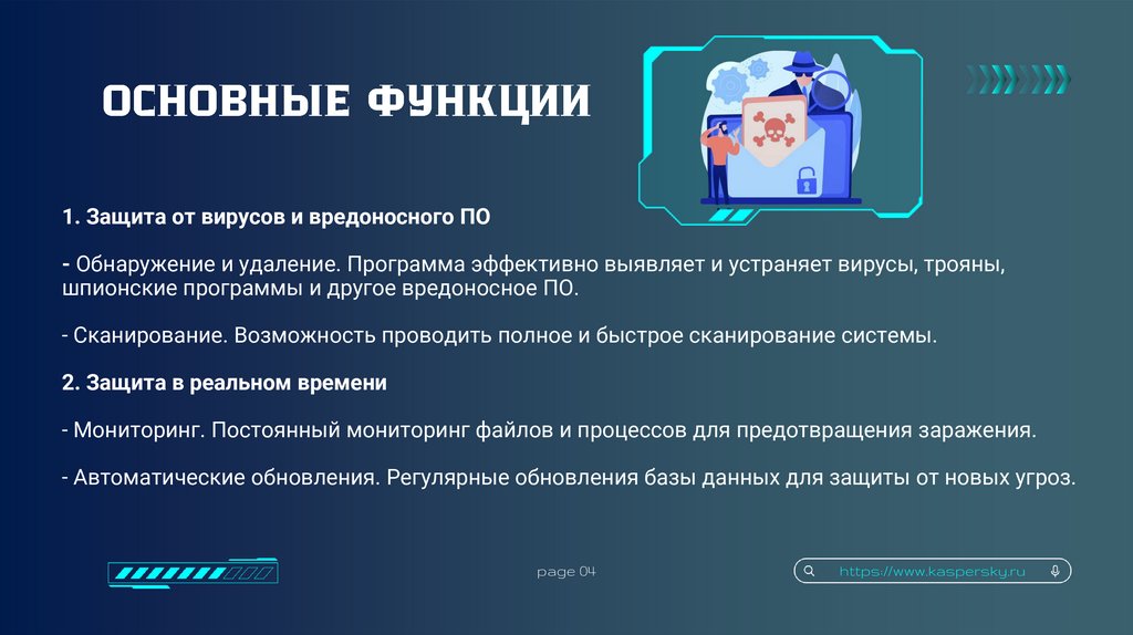 1. Защита от вирусов и вредоносного ПО- Обнаружение и удаление. Программа эффективно выявляет и устраняет вирусы, трояны,