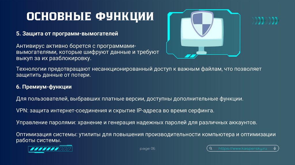 5. Защита от программ-вымогателейАнтивирус активно борется с программамивымогателями, которые шифруют данные и требуют